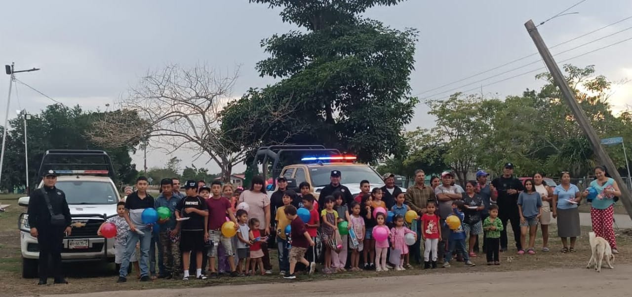 En el evento participaron niñas y niños, así como adultos habitantes del ejido, quienes recibieron juguetes y alimentos entregados por los elementos de la corporación, en un ambiente de cercanía y convivencia familiar.