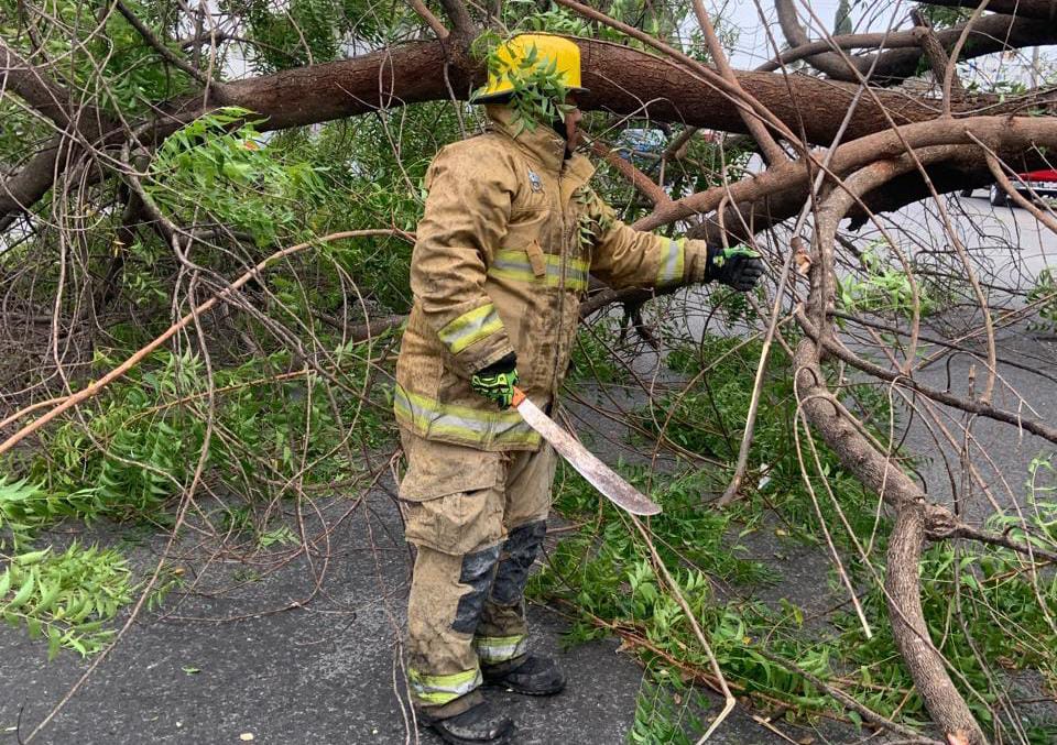 Personal de Protección Civil, Parques y Jardines de Servicios Públicos y Desarrollo Urbano, realizaron trabajos de poda y retiro de árboles caídos en la calle 7 Ceros Hidalgo y Juárez; avenida 24, calle Esmeralda de la colonia Loma Alta y 9 y 10 Canales de la colonia Mainero.