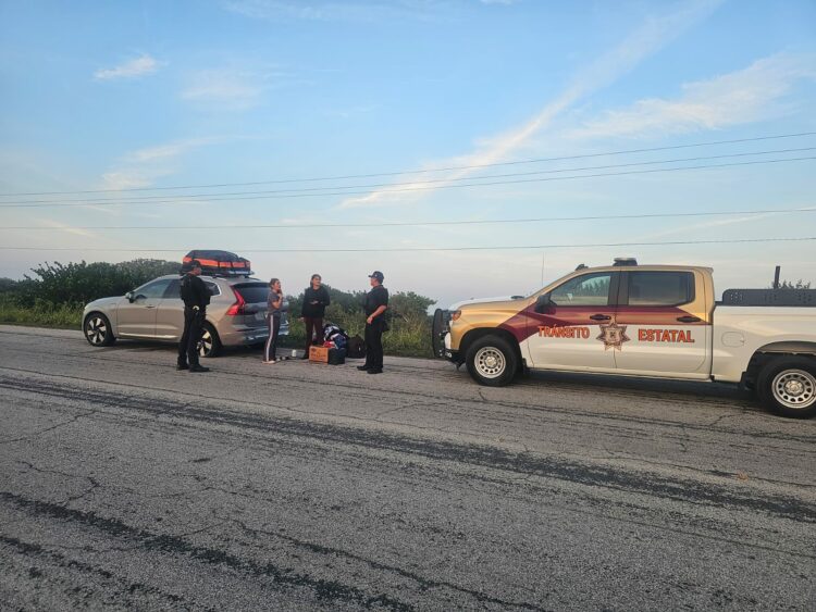 Con el propósito de prevenir accidentes y salvaguardar su integridad, el personal de Tránsito Estatal la acompañó durante la espera y proporcionó abanderamiento y vialidad durante el reemplazo del neumático.