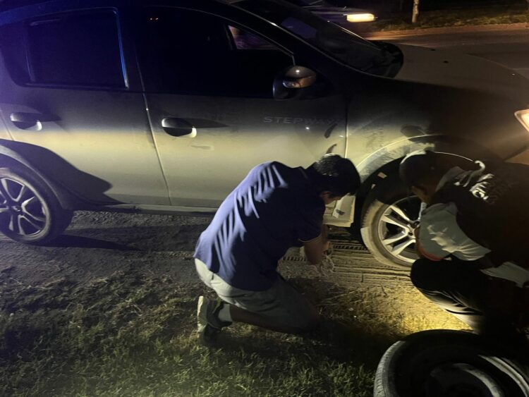 Al aproximarse al lugar, los agentes se entrevistaron con el conductor, quien explicó que el neumático delantero derecho de su automóvil se había ponchado, lo que le impedía continuar su trayecto.