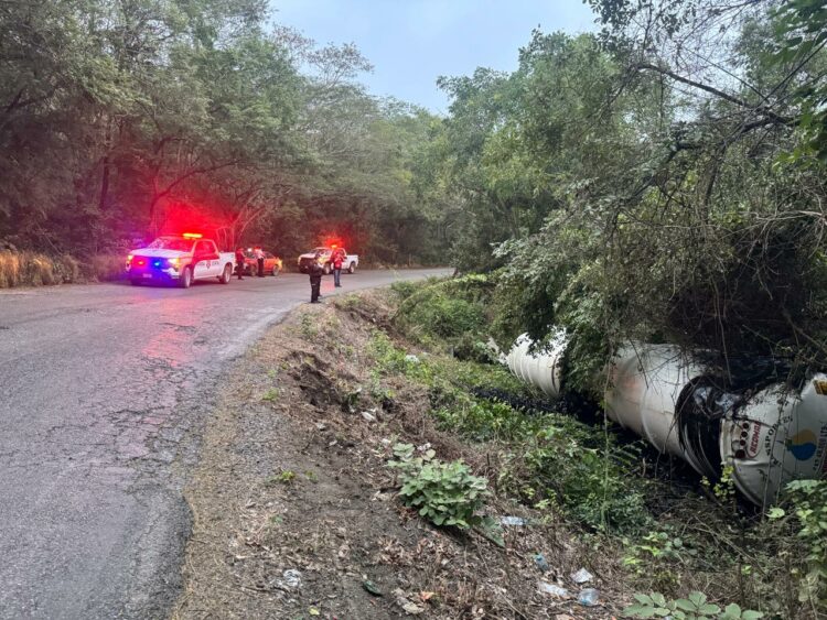 Durante recorridos de seguridad y vigilancia, personal de la Dirección de Tránsito Estatal, detectaron el vehículo fuera de la cinta, mismo que trasladaba material, tras el accidente, se registró derrame de fluidos, lo que representó un riesgo para la seguridad de los automovilistas y obligó a restringir la circulación de manera preventiva.