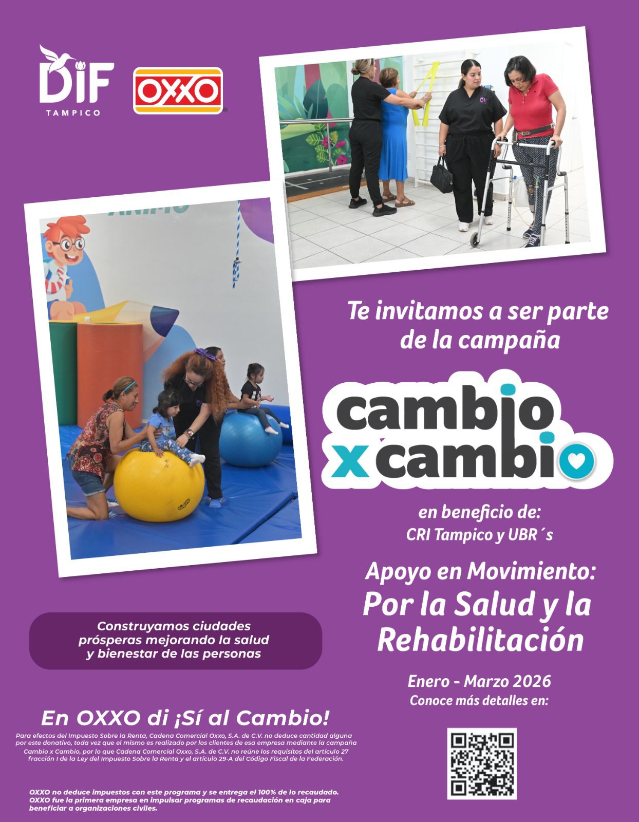 Con el objetivo de fortalecer los servicios de atención especializada para las personas con discapacidad, el Sistema DIF Tampico, en coordinación con la cadena comercial OXXO, pondrán en marcha la campaña de redondeo cambio x cambio «Por la Salud y la Rehabilitación».