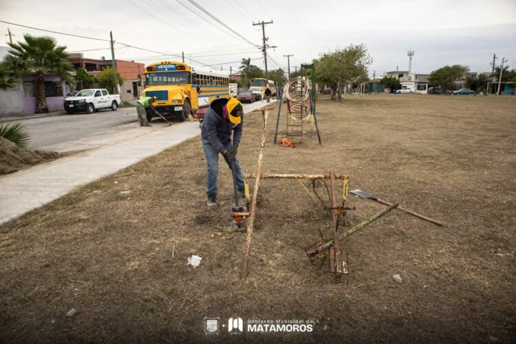 Matamoros, Tam.- El Gobierno de Beto Granados, a través de la Cuadrilla Renace, continúa reforzando las acciones para la recuperación y mantenimiento de los espacios públicos de Matamoros, como parte del compromiso de generar entornos dignos y seguros para las familias. En esta ocasión, los trabajos se realizaron en el área recreativa de la colonia Rincón Colonial, donde se llevaron a cabo labores de limpieza y mantenimiento general.