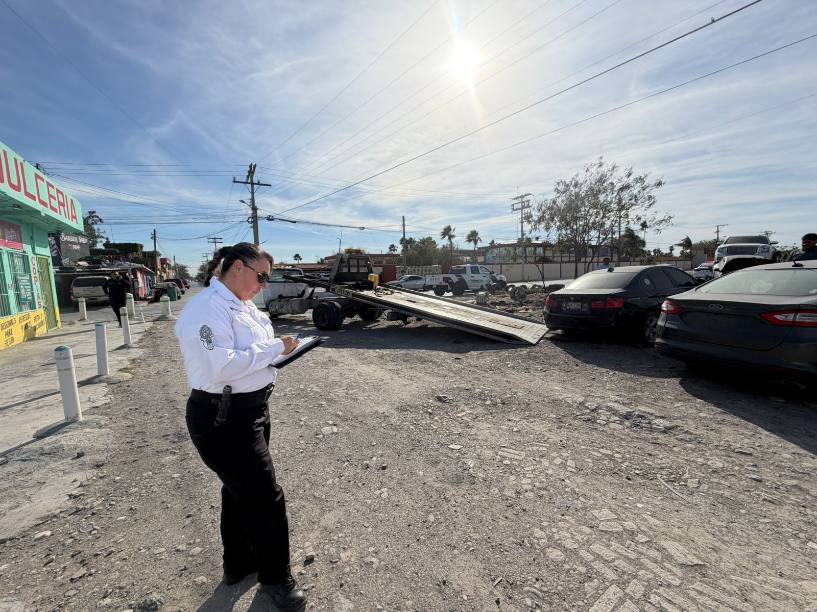 Como parte de estas acciones, alrededor de las 2:40 de la tarde, elementos de Tránsito y Vialidad acudieron a las calles Jesús Orquiza y L. Rangel, en la colonia Abelardo de la Torre, donde se atendió una denuncia ciudadana relacionada con el uso indebido de la vía pública y la invasión de un área verde por parte de un taller mecánico.