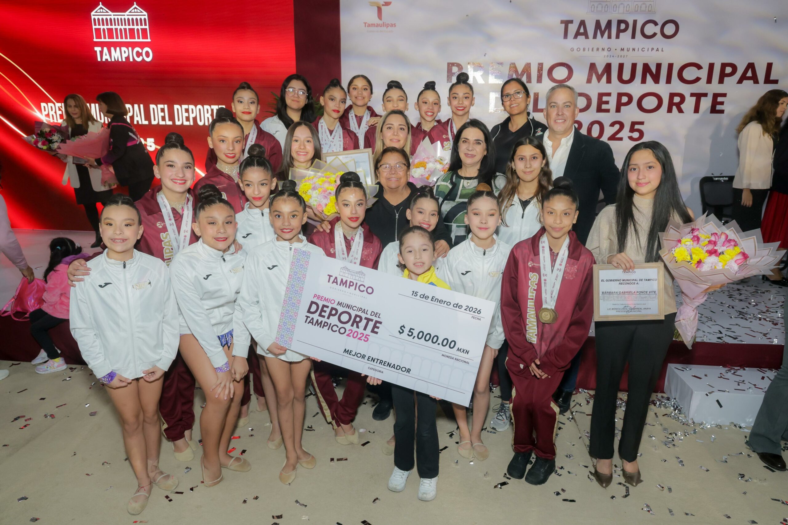 El gimnasio polideportivo de Tampico vivió una noche de ensueño con la entrega del Premio Municipal del Deporte, a cargo de la Alcaldesa Mónica Villarreal Anaya, quien reconoció el esfuerzo, disciplina y excelencia de los atletas, entrenadores, promotores y comunicadores deportivos durante 2025.