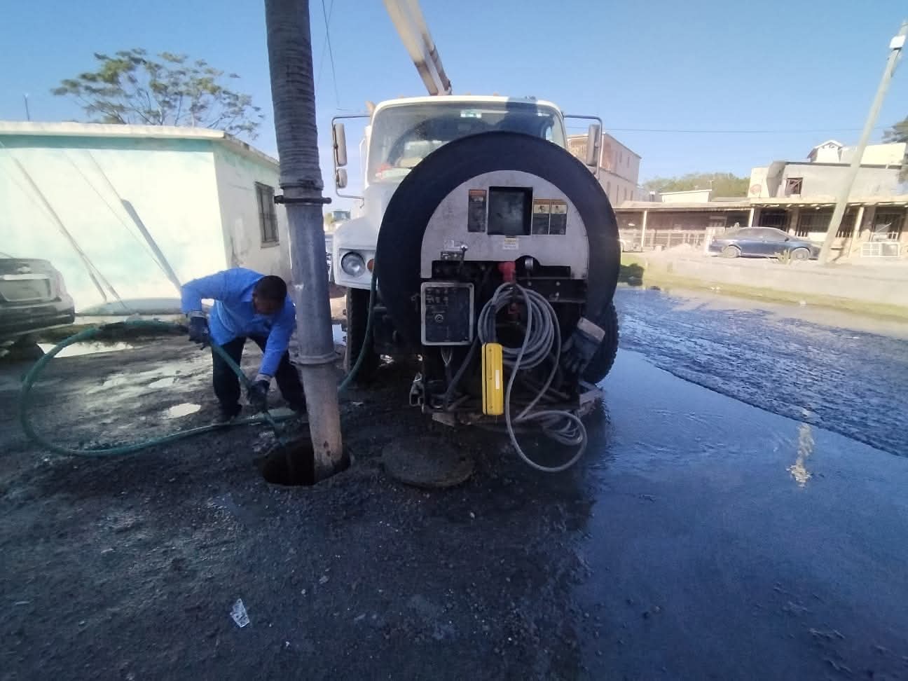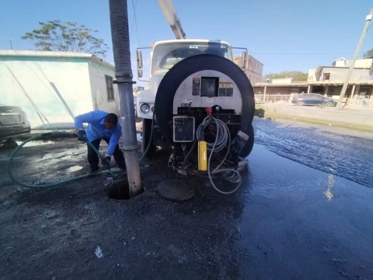 H. Matamoros, Tamaulipas.- Por instrucción del alcalde Beto Granados, el camión vactor de la Junta de Aguas y Drenajes realizó trabajos de limpieza y desazolve en diversos sectores de la ciudad, como parte de las acciones permanentes para fortalecer el sistema de drenaje sanitario.
