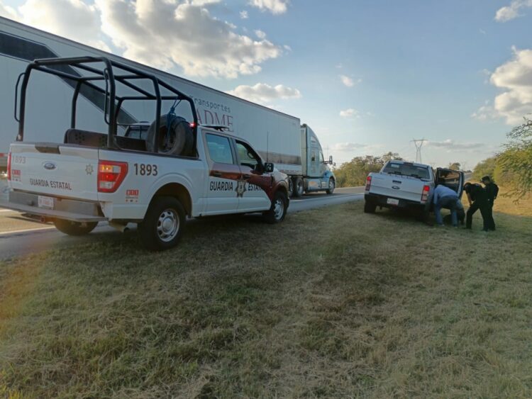 González, Tamaulipas.- Durante un recorrido de seguridad y vigilancia, personal de la Guardia Estatal brindó apoyo ciudadano a un automovilista que quedó varado por una avería mecánica en la Carretera Federal 80, a la altura del libramiento Villa Manuel–González, en el municipio de González.