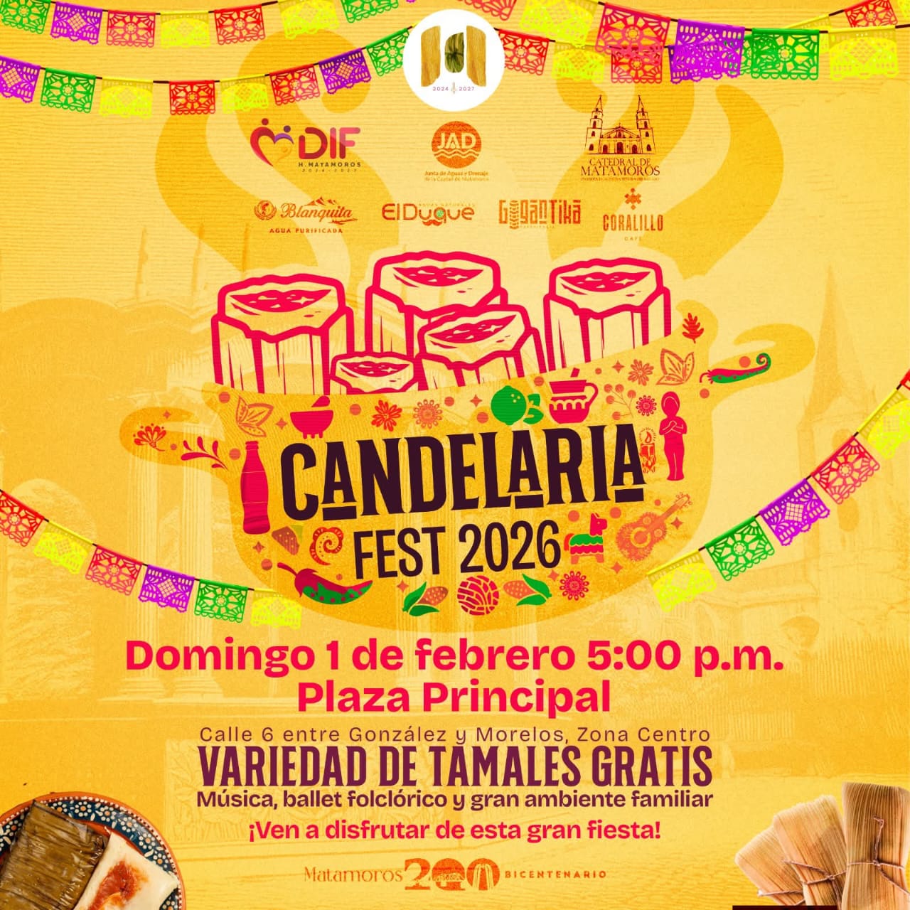 H. Matamoros, Tamaulipas.- La Plaza Principal será sede este domingo del Candelaria Fest 2026, una celebración que promueve la preservación de las tradiciones, el fortalecimiento de la convivencia familiar y el impulso a la identidad cultural de Matamoros, en un ambiente de orden, participación y sana recreación.