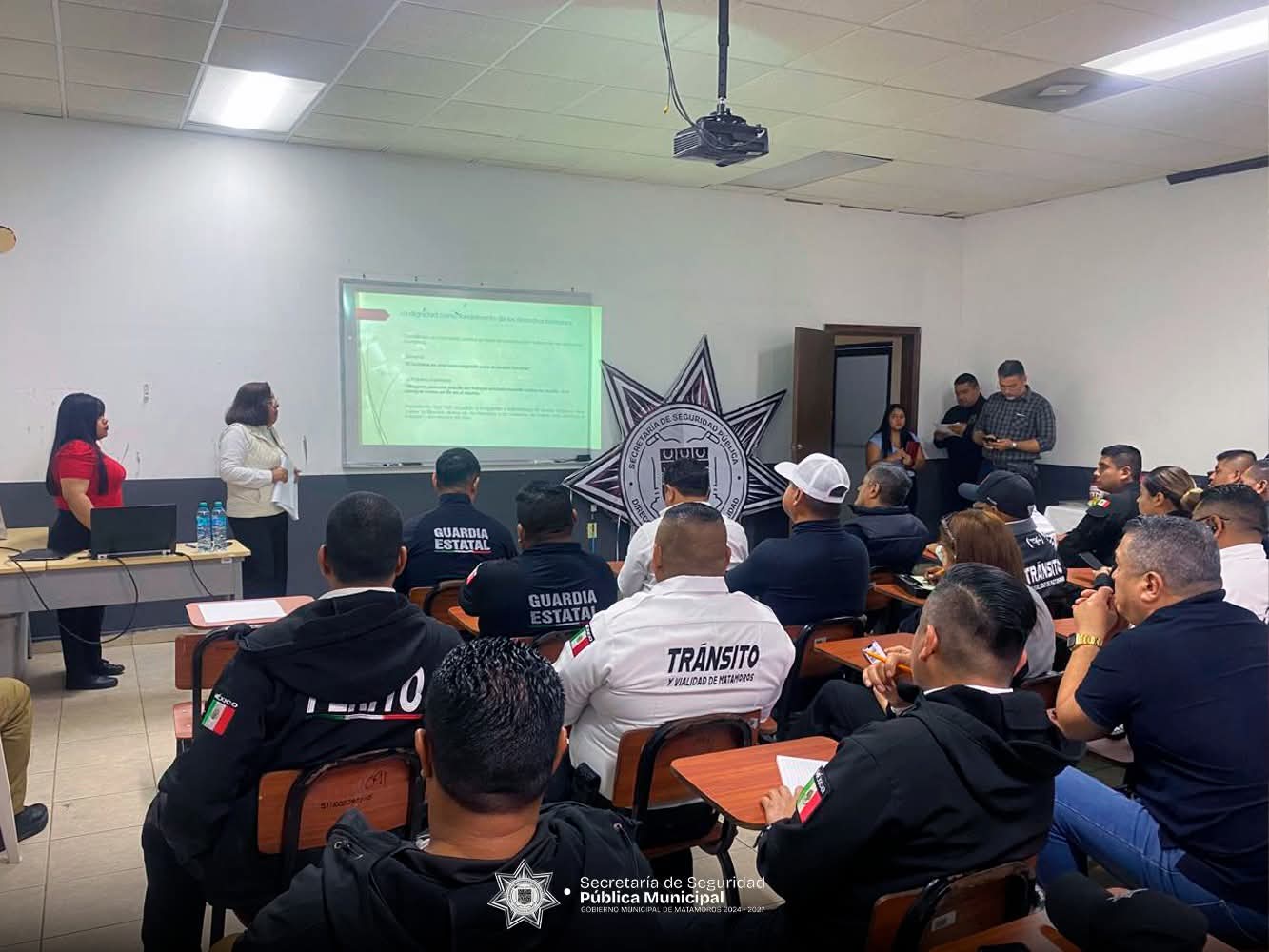 H. Matamoros, Tamaulipas.- Por instrucciones del alcalde Beto Granados, la Secretaría de Seguridad Pública continúa fortaleciendo la capacitación permanente de su personal mediante la realización de la segunda conferencia titulada “Derecho y Seguridad”, impartida por la Comisión de Derechos Humanos, como parte de las acciones para consolidar un servicio público más profesional y humano.