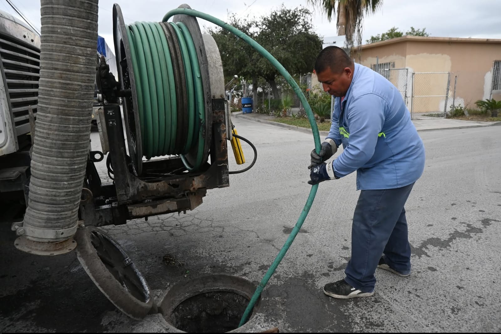 Por ello, personal del camión vactor de la Junta de Aguas y Drenajes acudió a la colonia San Fernando para realizar trabajos de limpieza y desazolve en las líneas de drenaje sanitario, donde se detectó acumulación de grasas y basura que obstruían el flujo adecuado.