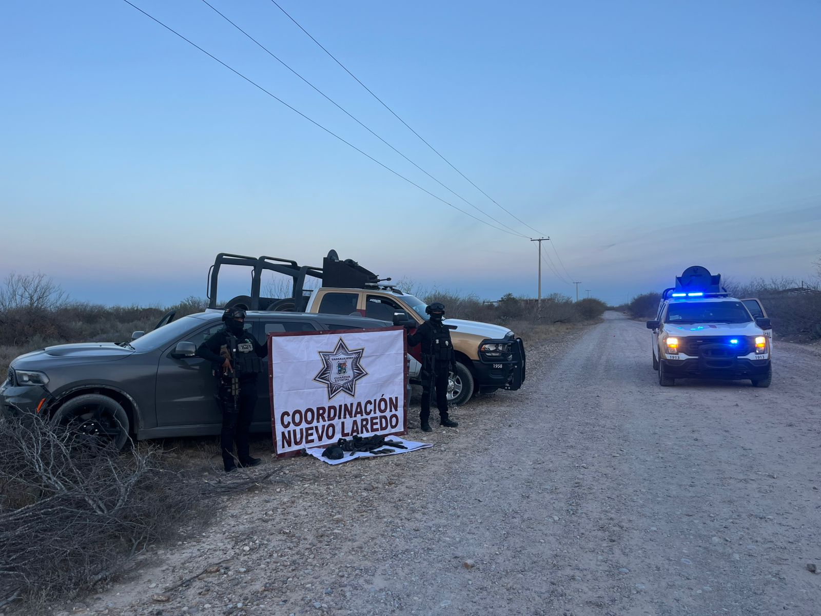 Nuevo Laredo, Tamaulipas.- Durante labores de seguridad y vigilancia, personal de la Guardia Estatal aseguró un vehículo con reporte de robo en el extranjero, así como armamento y equipo táctico, luego de que sus ocupantes huyeran en la colonia América 12, en el municipio de Nuevo Laredo.