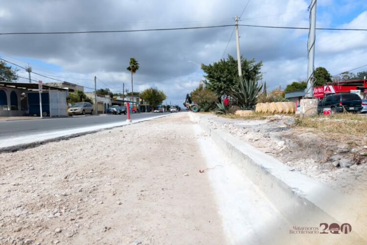 Matamoros, Tam.- El Gobierno de Beto Granados lleva a cabo la primera etapa de ampliación de carriles en la avenida División del Norte, una obra enfocada en mejorar la movilidad y facilitar el tránsito vehicular en uno de los sectores con mayor circulación de la ciudad.