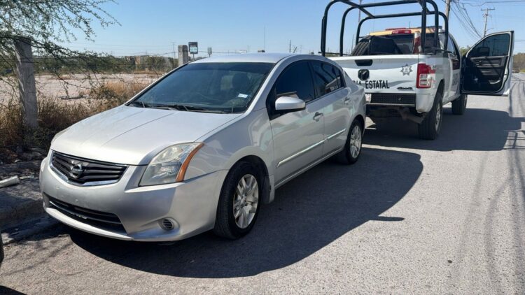 La movilización se realizó en el cruce de las calles Ciruelos y Naranjos, donde los elementos visualizaron un automóvil Nissan Sentra, cuyas características coincidían con las del vehículo reportado.