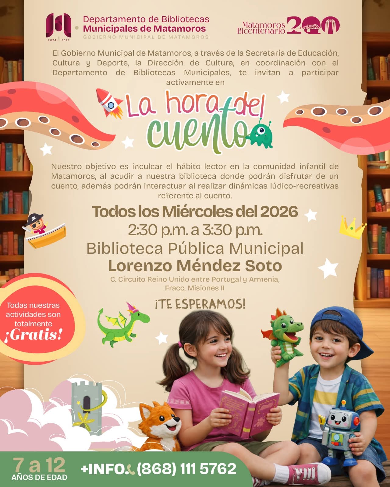 Cada miércoles, de 2:30 p.m. a 3:30 p.m., menores de entre 7 y 12 años participan en esta actividad que convierte a la biblioteca en un punto de encuentro, descubrimiento y convivencia, donde cada historia abre la puerta a nuevos mundos.
