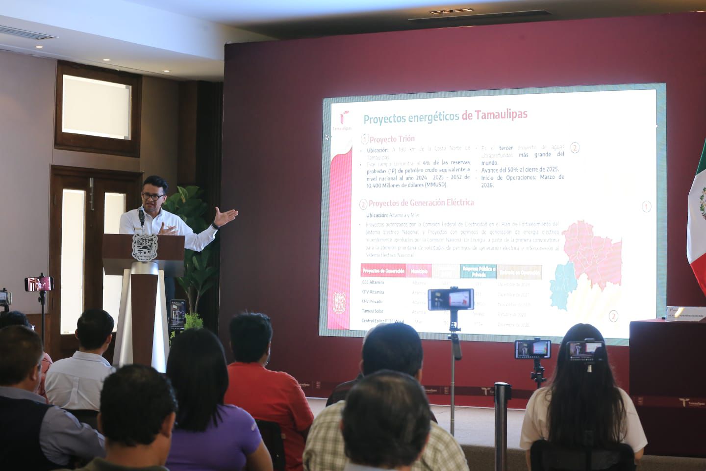 Mencionó los 10 proyectos estratégicos que tienen un avance significativo en el estado y que impulsa el gobernador Américo Villarreal para que Tamaulipas consolide su potencial energético y económico.