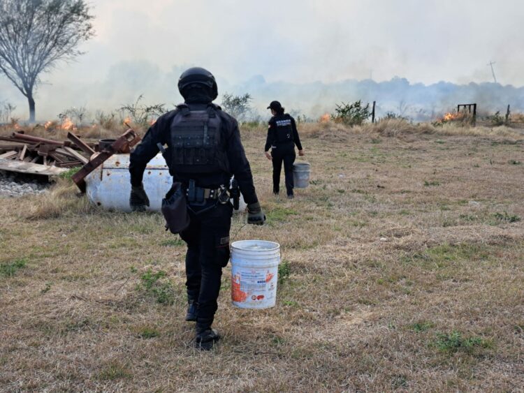 Debido a que el incendio afectó también al interior de un rancho, el personal de la Guardia Estatal apoyó con maniobras para sofocar el fuego.
