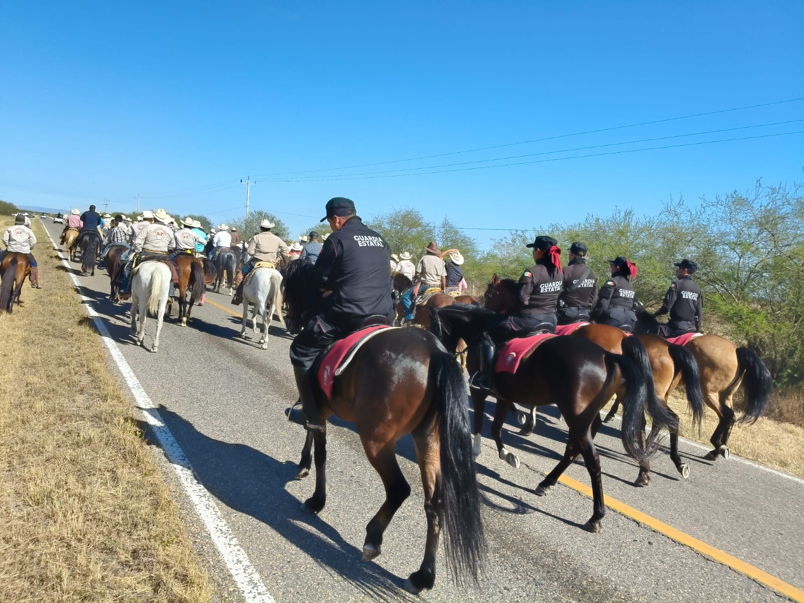 Por parte de la Guardia Estatal, participaron seis equinos y ocho policías, quienes recorrieron 13 kilómetros brindando seguridad y manteniendo la proximidad con cabalgantes.