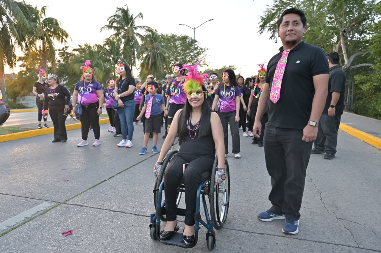 La comparsa del DIF, integrada por más de 200 personas, luce con orgullo la playera emblemática de la celebración de los 100 años del edificio histórico del DIF Tampico, fortaleciendo el sentido de identidad y pertenencia en esta gran fiesta.