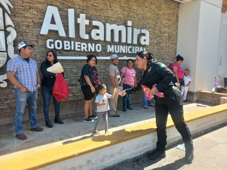 Altamira, Tamaulipas.-Al realizar recorridos de seguridad y vigilancia en la Zona Centro del municipio de Altamira, personal de la Guardia Estatal mantuvo la proximidad en un módulo de vacunación instalado en la vía pública.