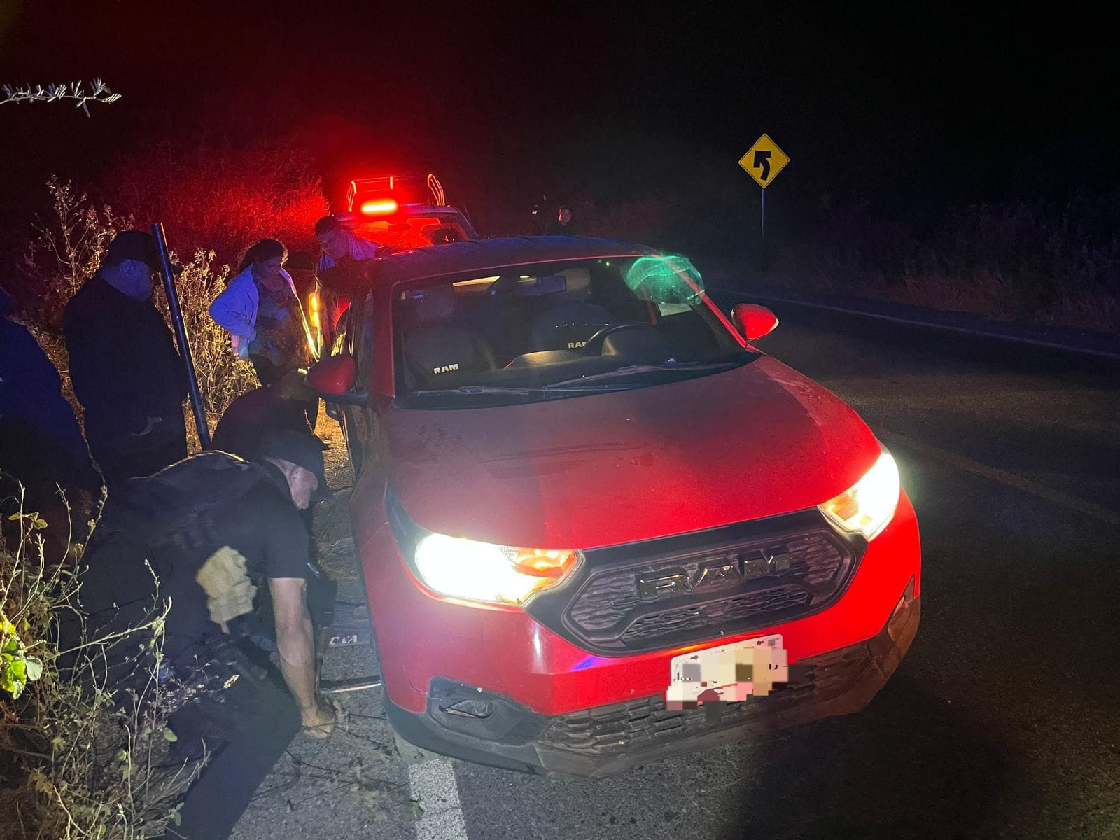 Casas, Tamaulipas.- En atención a un reporte del C4 personal de la Guardia Estatal de Apoyo Carretero comisionado a la Estación Segura Soledad acudió al kilómetro 11 de la Carretera Estatal 75 Villa de Casas-Soto la Marina para asistir a un conductor con un cambio de neumáticos averiados.