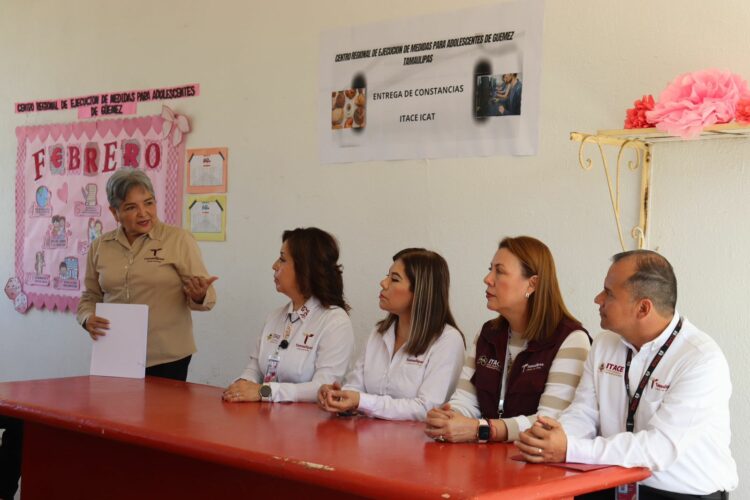 La ceremonia de entrega de constancias se realizó en el Centro Regional de Ejecución de Medidas para Adolescentes del municipio de Güémez y contó con la presencia de la directora general del ITACE, Claudia Anaya Alvarado.