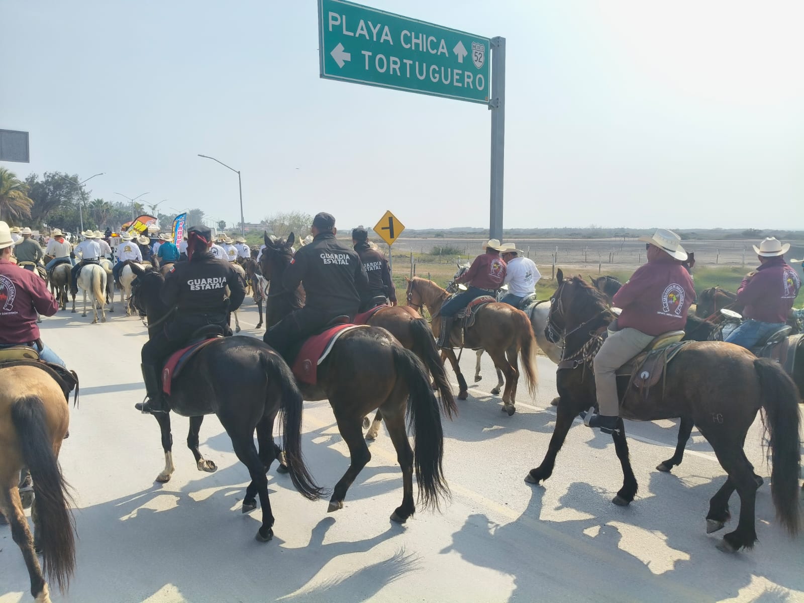 Soto la Marina, Tamaulipas.— El personal de la Guardia Estatal brindó acompañamiento, seguridad y vigilancia durante la “Gran Cabalgata de la Amistad”, evento que reunió a aproximadamente mil jinetes, que concluyó con saldo blanco.