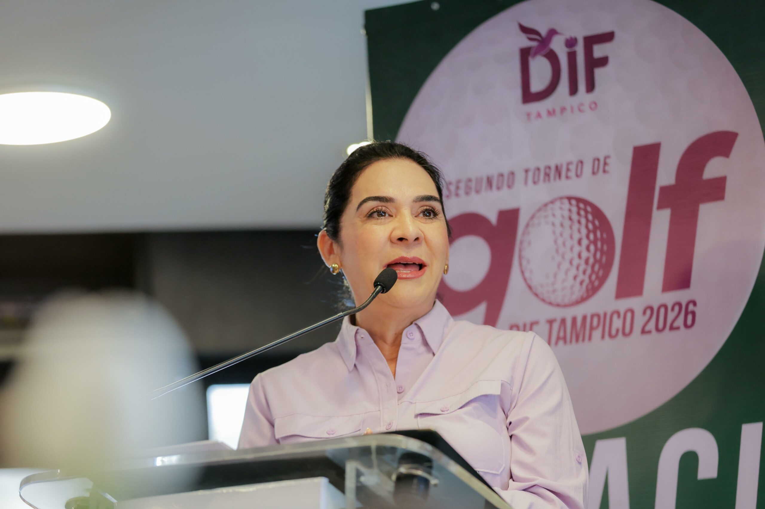Durante su mensaje, la titular del DIF Tampico, Luz Adriana Villarreal Anaya, hizo un reconocimiento especial a Leandro René Elizondo Tuñón, Presidente del Club Campestre; así como a Antolín Sierra Gámez, Presidente de la Liga del Comité de Golf, por sumarse a esta noble causa y compartir la visión de un DIF fuerte y cercano a la gente.