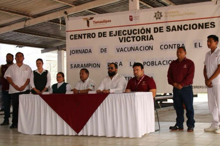 Ciudad Victoria, Tamaulipas.- Con el propósito de prevenir contagios de sarampión al interior de los Centro de Ejecución de Sanciones (CEDES) de Ciudad Victoria y Reynosa en coordinación con la Secretaría de Salud de Tamaulipas (SST) se llevó a cabo una campaña de vacunación en estos centros penitenciarios.