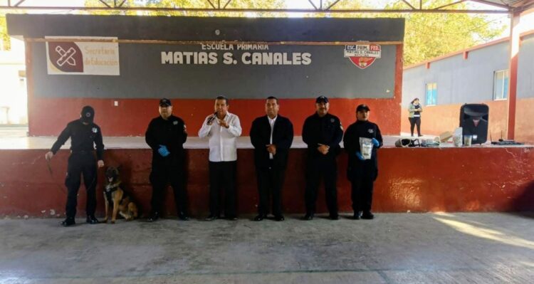 Ciudad Victoria, Tamaulipas.- Con el objetivo de fortalecer la cultura de la prevención desde edades tempranas, la Dirección de Agrupamientos Policiales, a través del Agrupamiento Canino, realizó una jornada cultural para prevención y auxilio en la Escuela Primaria Matías S. Canales, ubicada en la colonia Tamatán de Ciudad Victoria.