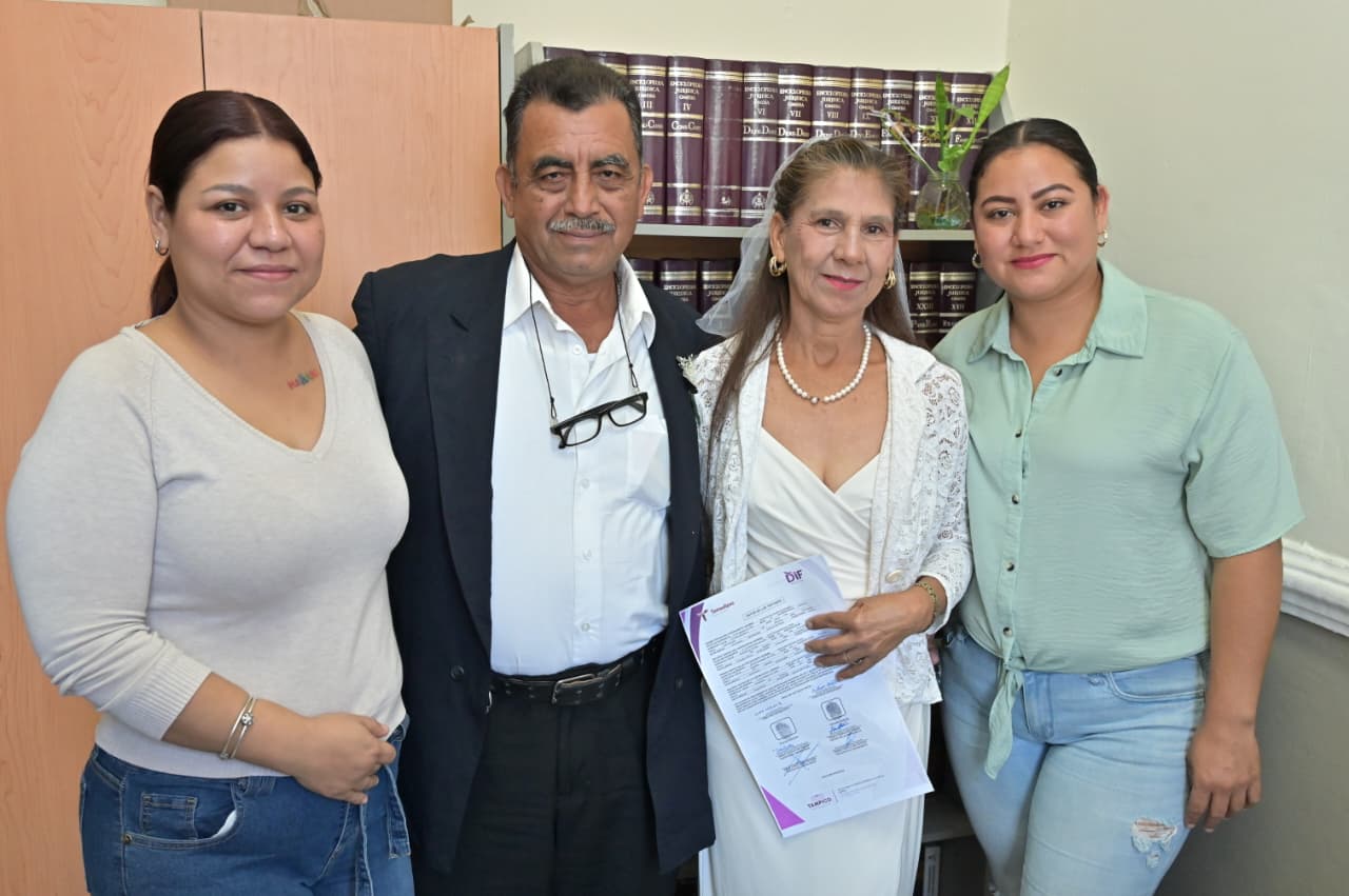 La felicidad de la pareja fue respaldada por sus hijos, quienes los acompañaron en el registro que se llevó a cabo en la oficina de la Procuraduría de Protección a la Mujer, la Familia y los Asuntos Jurídicos del DIF.