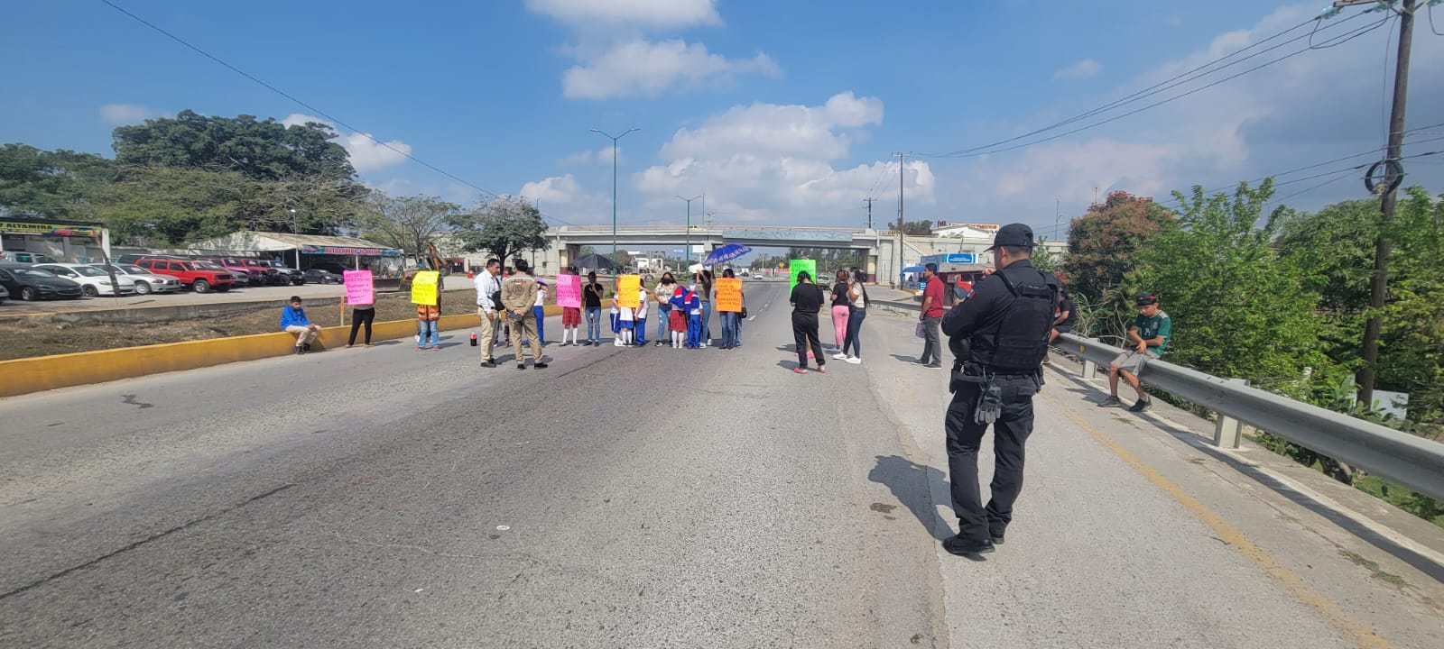 Altamira, Tamaulipas.- Derivado de una manifestación, la circulación se encuentra cerrada en la Carretera Tampico-Mante a la altura del Puente Las Piñas ubicado en el municipio de Altamira.