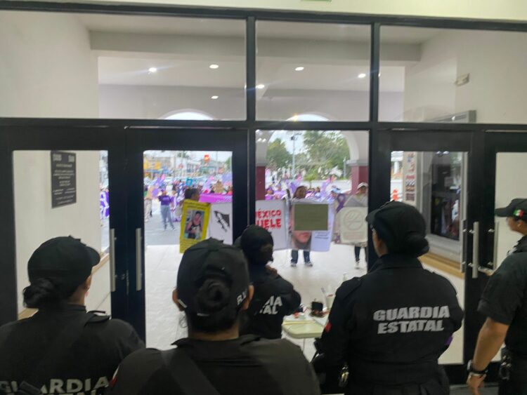 Durante el desarrollo de la marcha, el personal de seguridad mantuvo presencia preventiva en el área con el objetivo de resguardar el orden público y permitir el desarrollo de la manifestación.