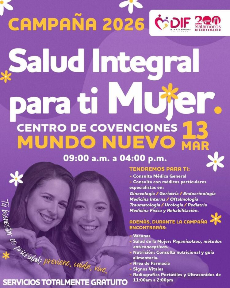 Con el firme objetivo de priorizar la prevención y el cuidado de la salud femenina, el Sistema DIF Matamoros, encabezado por su presidenta, la Lic. Ana Ariceaga de Granados, anunció el lanzamiento de la Campaña de Salud Integral “Para Ti, Mujer”.
