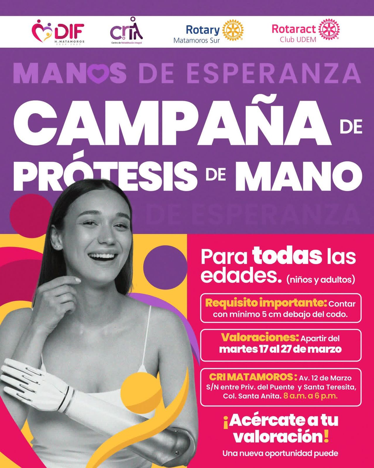 Esta iniciativa busca beneficiar a niñas, niños y adultos que requieran este dispositivo, permitiéndoles recuperar funcionalidad e independencia en sus actividades diarias. La campaña es posible gracias a la suma de esfuerzos y el trabajo coordinado entre el DIF Municipal, Rotary Matamoros Sur y Rotaract UDEM.