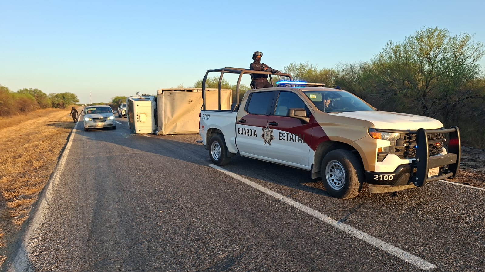 Padilla, Tamaulipas.- Derivado de un accidente con volcadura, se mantiene parcialmente suspendida la circulación en el kilómetro 54 de la Carretera Federal 101, sin que se reportaran personas lesionadas.