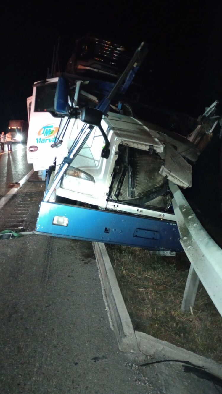 Llera, Tamaulipas.- Debido a un accidente vehicular en el que participaron tres tractocamiones, la circulación se encuentra habilitada de manera intermitente en la Carretera Federal 81.