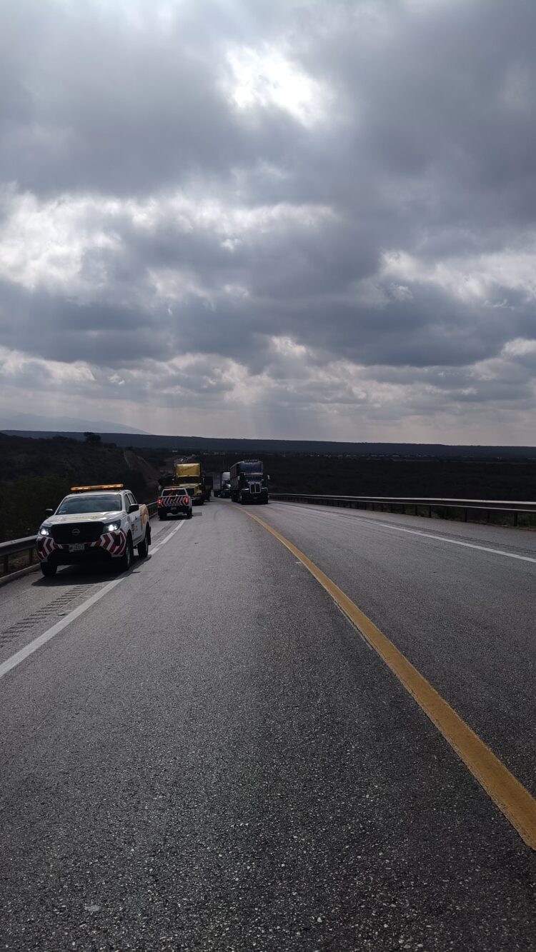 Llera, Tamaulipas.- Derivado de las maniobras de atención de un accidente vehicular en el que participaron tres tractocamiones, la circulación se encuentra fluyendo con lentitud en la Carretera Victoria-Zaragoza.