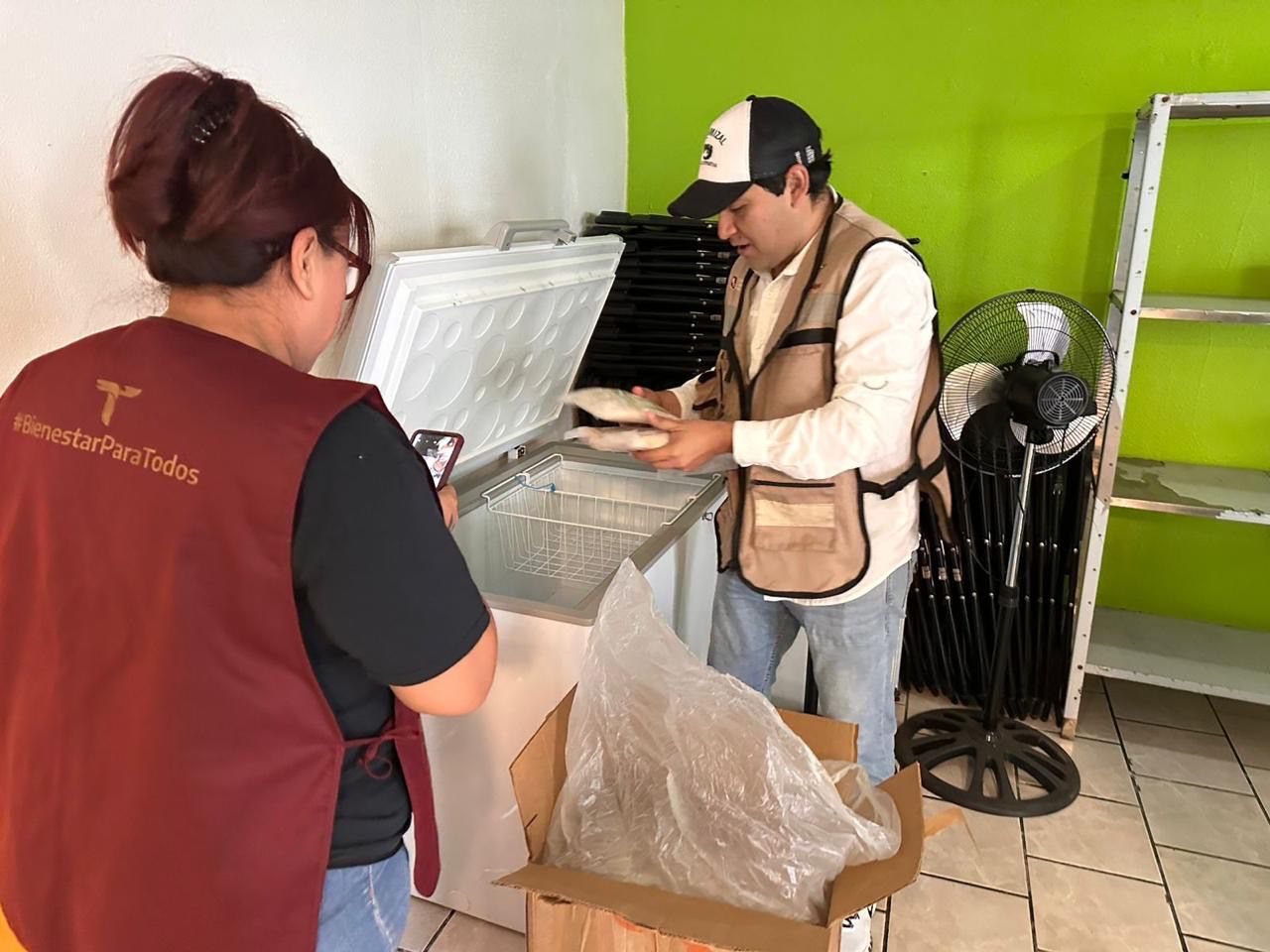 Durante estas acciones se constató la entrega de raciones de filete de pescado a los comedores, producto suministrado por la Sociedad Cooperativa de Producción Pesquera El Chamizal, en cumplimiento de los compromisos establecidos con la Secretaría de Bienestar Social.