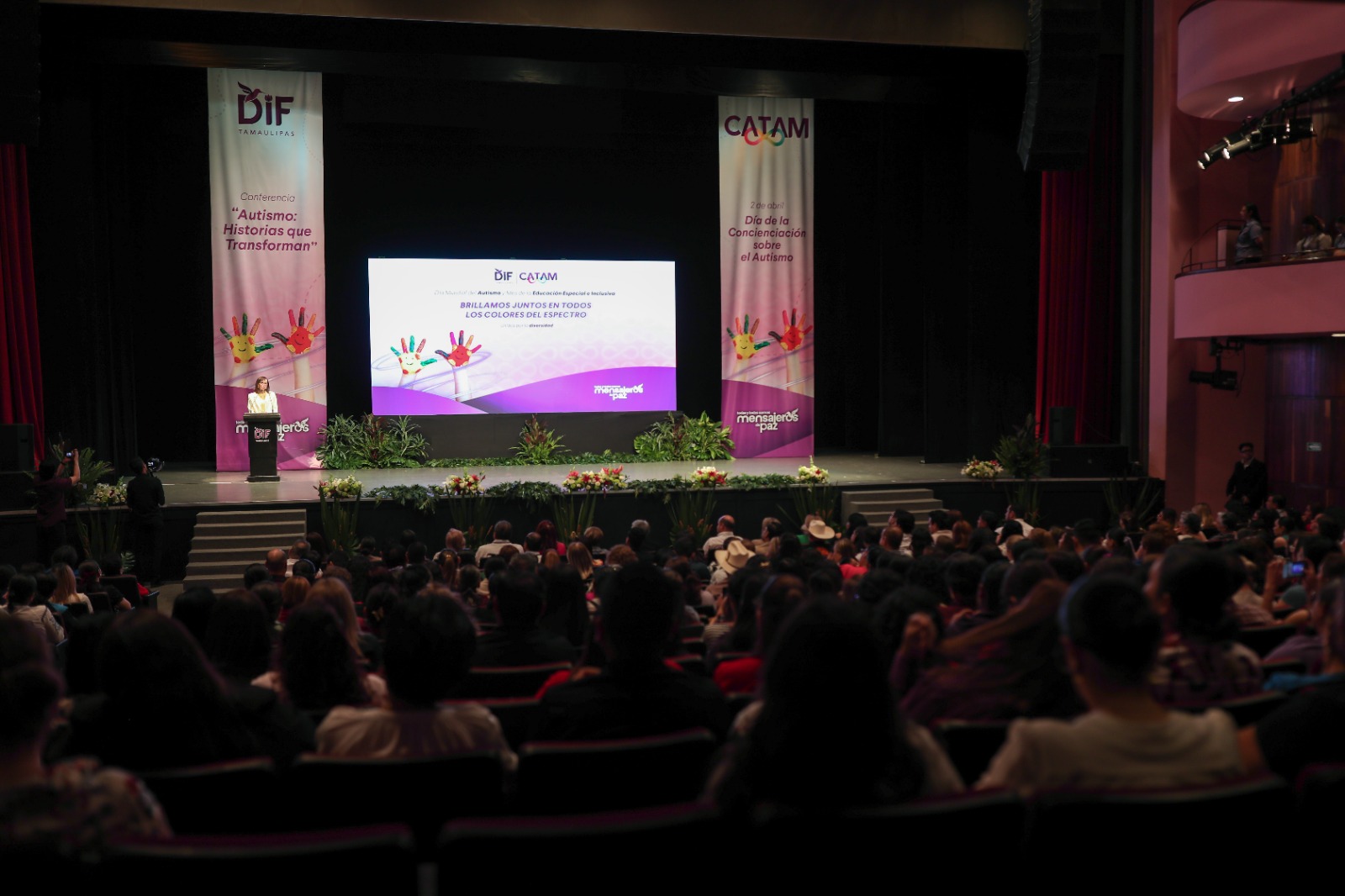 Ciudad Victoria, Tamaulipas.- Para sensibilizar a la comunidad en general, así como fortalecer el conocimiento sobre el autismo y reafirmar el compromiso social de construir entornos más empáticos, accesibles e inclusivos, el Sistema DIF Tamaulipas, que preside la doctora María de Villarreal, llevó a cabo la conferencia “Autismo: Historias que Transforman”, en el marco de la conmemoración del Día de la Concienciación sobre el Autismo y el Mes de la Educación Especial e Inclusiva.