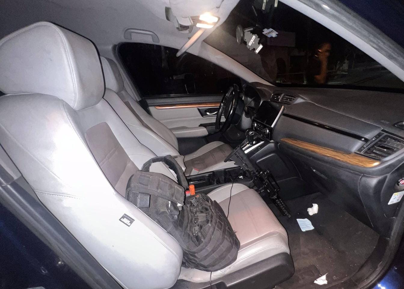 Al inspeccionar la unidad, los agentes observaron en el lado del copiloto, un arma larga tipo R-15, un chaleco balístico, así como tres cargadores abastecidos y cartuchos útiles.
