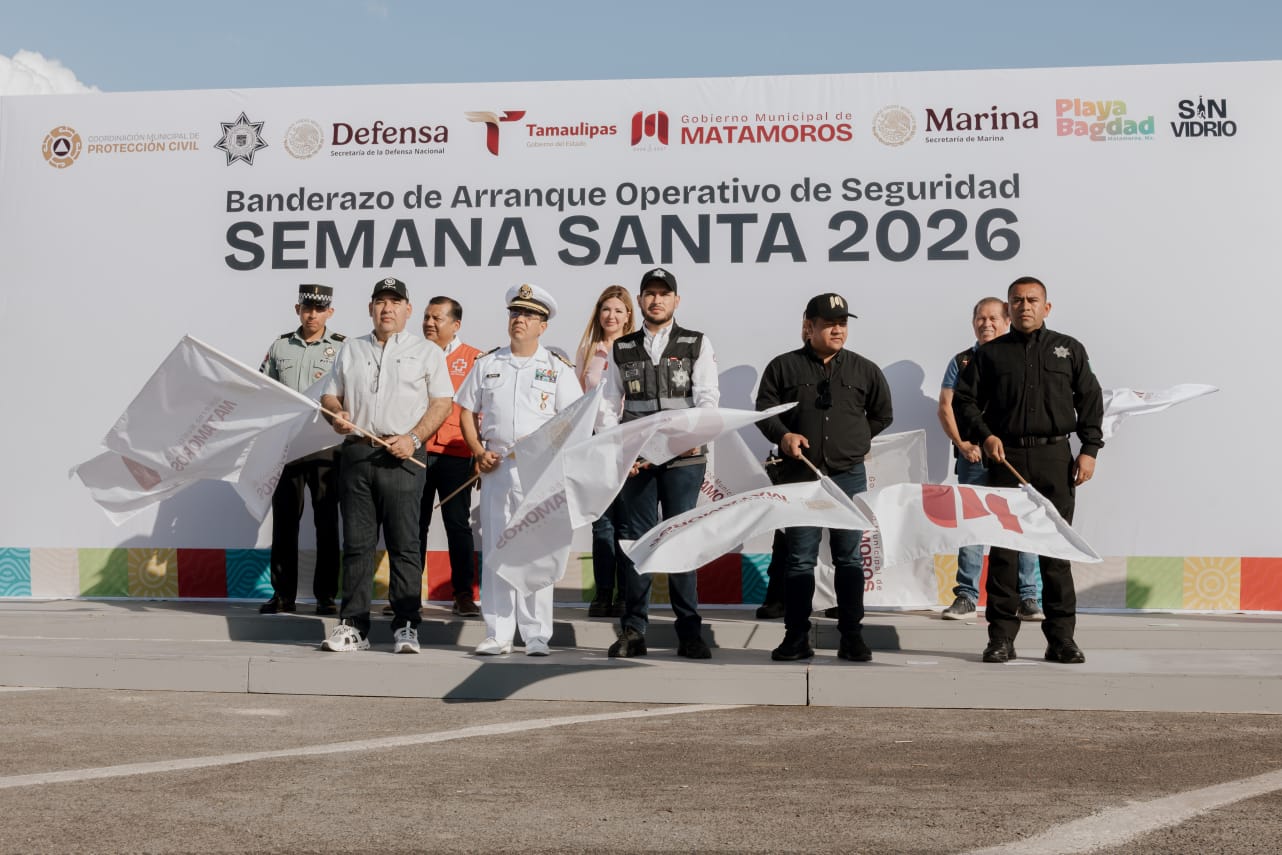 Matamoros, Tamaulipas.— Con el objetivo de garantizar una estancia segura y placentera para las familias y turistas, el alcalde Beto Granados dio el banderazo oficial al Operativo de Seguridad Semana Santa 2026.