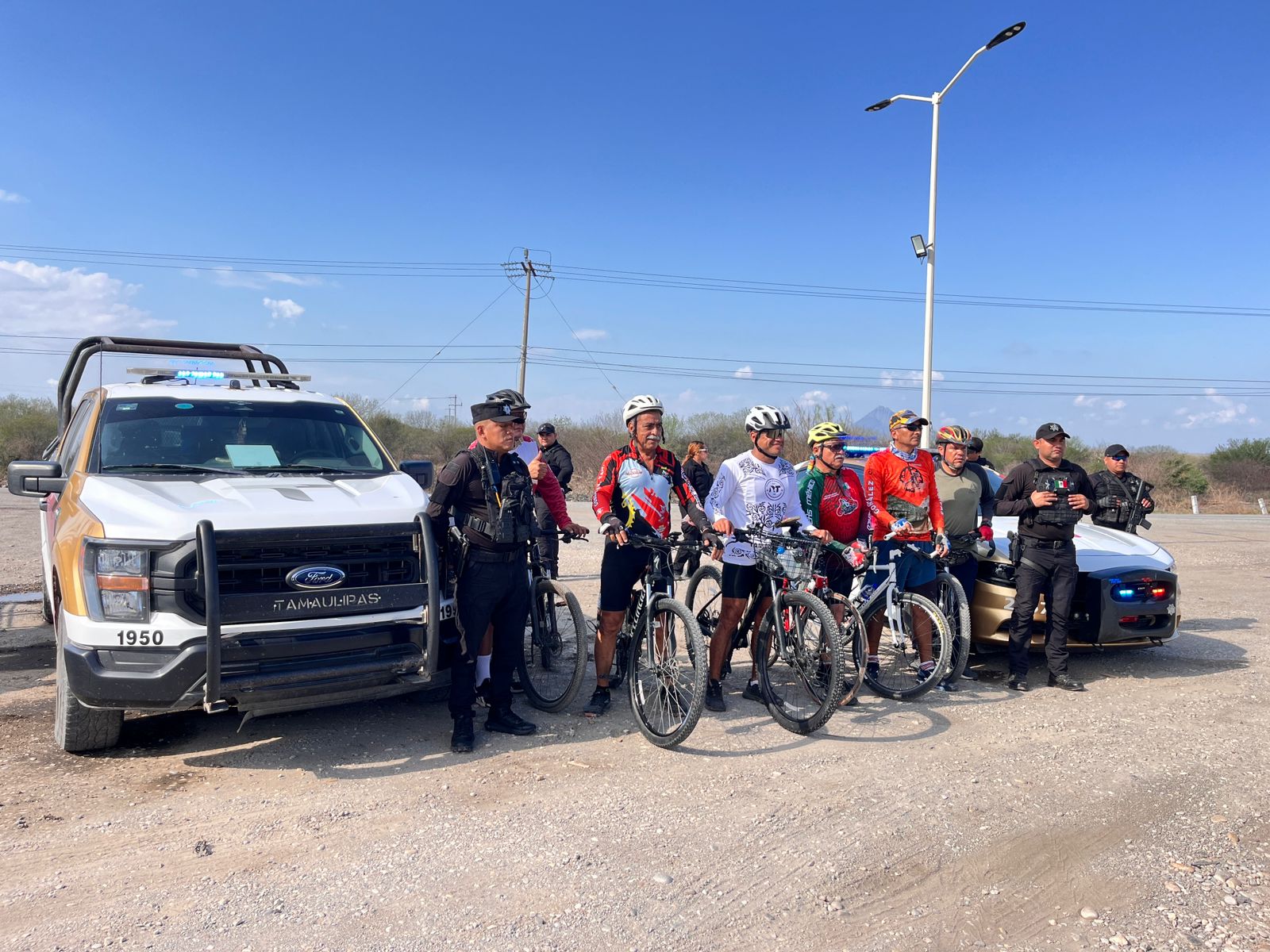 González, Tamaulipas.- Personal de la Guardia Estatal, adscrito a la Coordinación de González, brindó acompañamiento y seguridad vial a César Omar Vallejo Ledesma, atleta de alto rendimiento, quien lleva a cabo la iniciativa con causa denominada “Rodando X Tamaulipas” a bordo de su bicicleta.