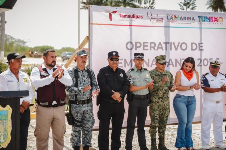 Soto la Marina, Tamaulipas.- Con el objetivo de salvaguardar la integridad de las familias y visitantes durante el periodo vacacional, personal de la Guardia Estatal se sumó al Operativo Semana Santa Segura 2026 en Soto la Marina.