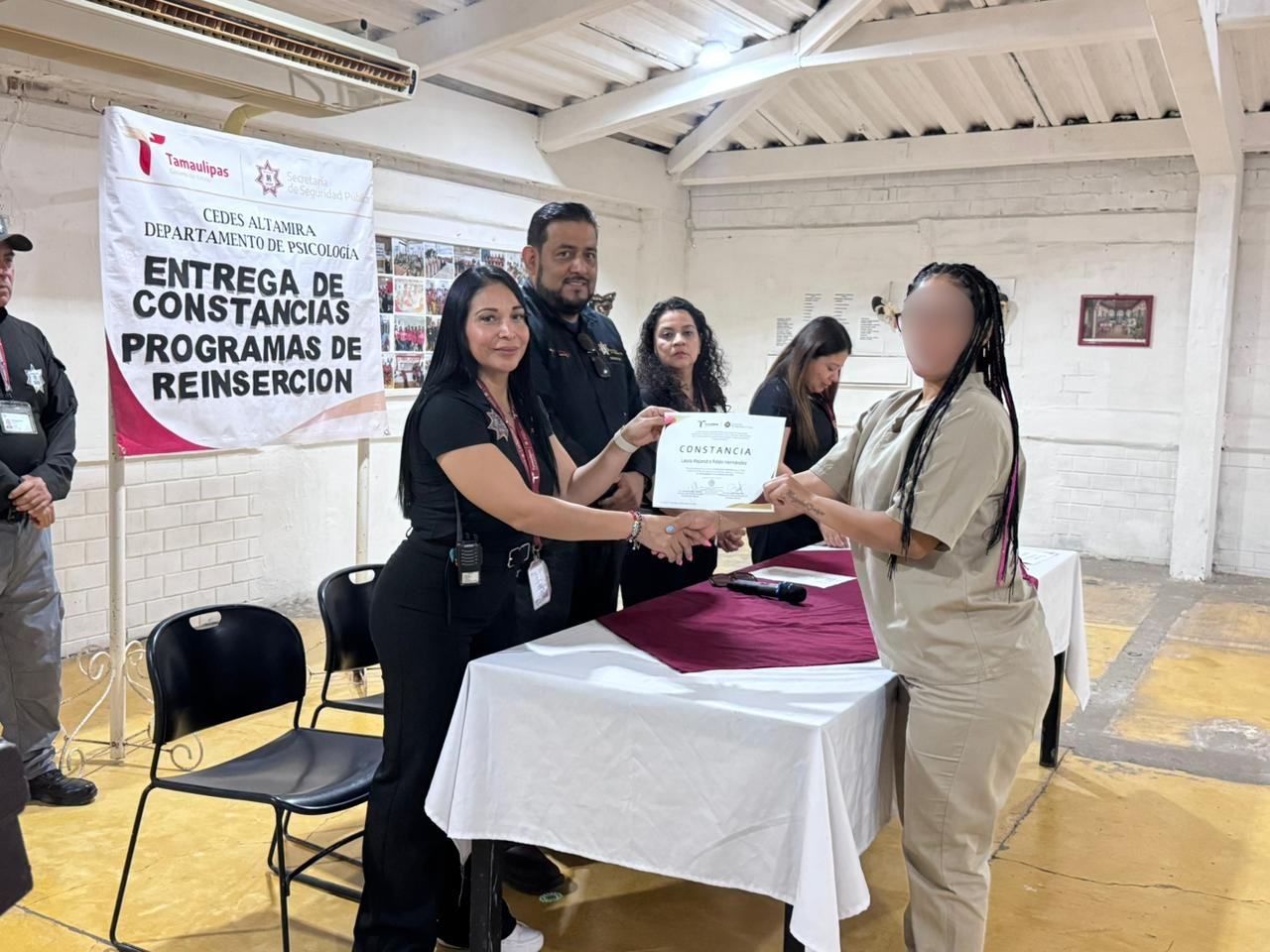 Altamira, Tamaulipas.– Como parte de las acciones de reinserción social dirigidas a personas privadas de la libertad (PPL), el Centro de Ejecución de Sanciones (CEDES) de Altamira concluyó una serie de cursos enfocados en la capacitación laboral y el fortalecimiento emocional, en los que participaron hombres y mujeres del área femenil y varonil.