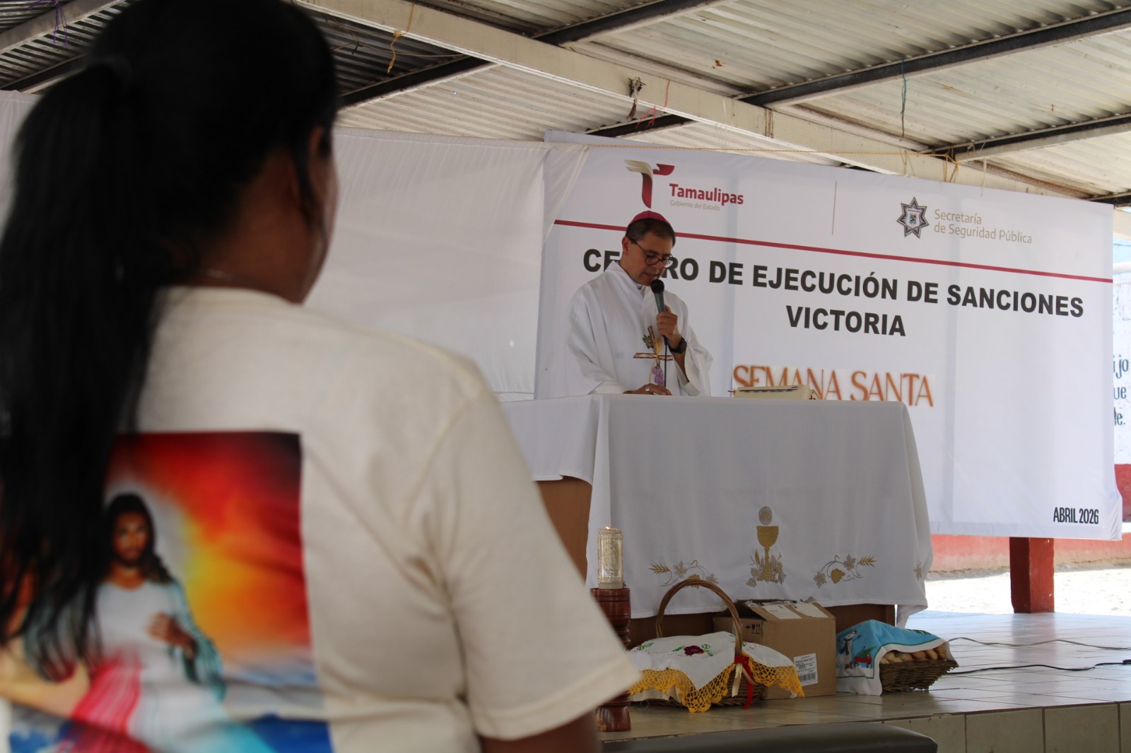 Ciudad Victoria, Tamaulipas.- En el marco de la conmemoración de la Semana Santa, un total de 250 Personas Privadas de la Libertad (PPLs) del Centro de Ejecución de Sanciones (CEDES) Victoria participaron en actividades religiosas organizadas al interior del inmueble.