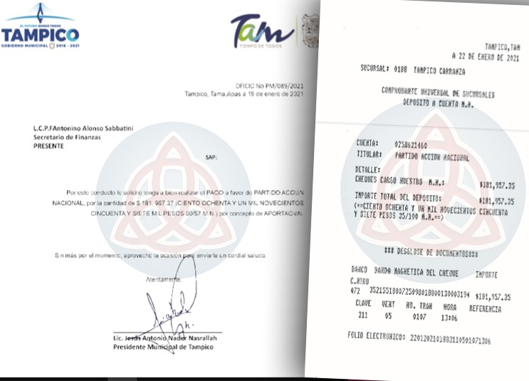 Tampico, Tamps.- Una revisión exhaustiva de documentos, solicitudes firmadas y comprobantes bancarios obtenidos por Noticias PC expone una secuencia administrativa que vincula decisiones tomadas desde la presidencia municipal de Tampico con una aportación económica dirigida al Partido Acción Nacional (PAN) en enero de 2021, en un contexto político marcado por la búsqueda de continuidad en el cargo.