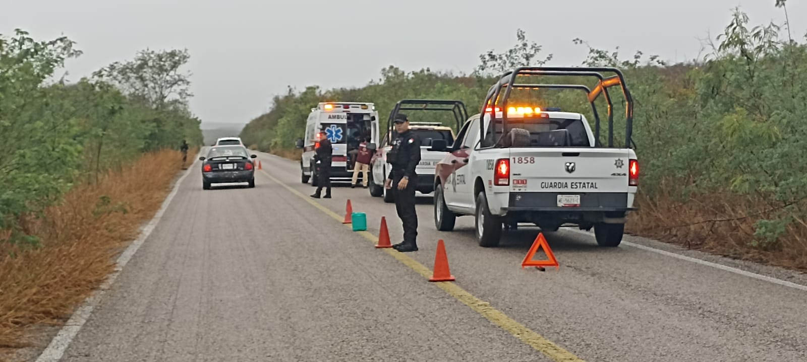 Tras la valoración médica y el retiro del automóvil de la maleza, el conductor optó por no continuar el viaje debido a la condiciones climatológicas.