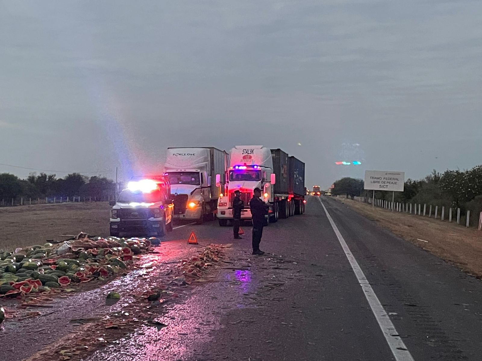Padilla, Tamaulipas.- Derivado del choque de un autobús de pasajeros con un vehículo de carga sobre el kilómetro 91 la circulación se encuentra cerrada en ambos carriles de la Carretera Federal 83 González-Hidalgo.