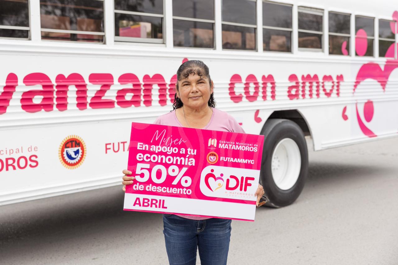 “Toda la comunidad podrá acceder a un 50% de descuento en cualquier ruta de la ciudad. Estos boletos podrán adquirirse en los diferentes centros DIF, facilitando el acceso al transporte público. Agradezco profundamente al licenciado Alberto Granados, presidente municipal de Matamoros. Gracias, presidente. Por su respaldo y compromiso en este tipo de acciones”, puntualizó.