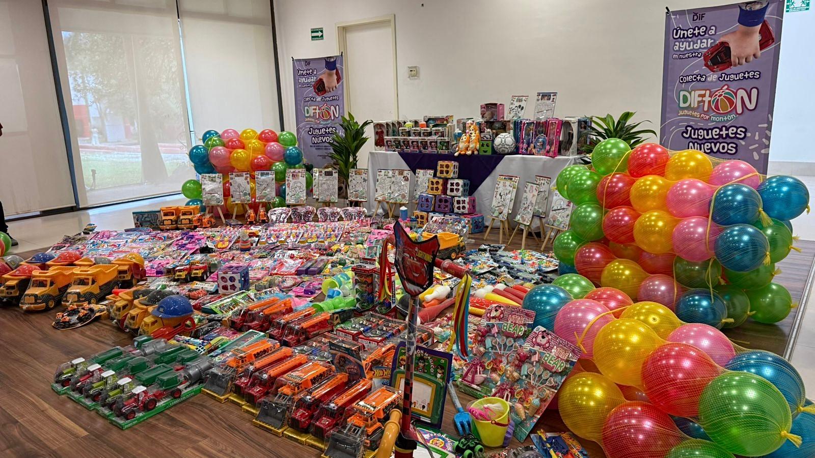 Desde pelotas, muñecas, cochecitos, juegos de destreza y triciclos, entre otros productos que no fomentan la violencia, fueron entregados a la noble institución que organiza la colecta DIFtón “Juguetes por Montón”.